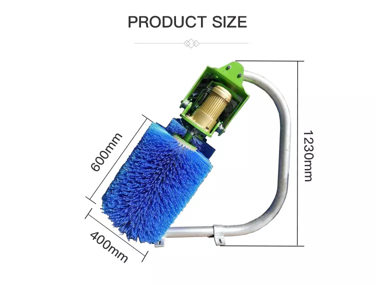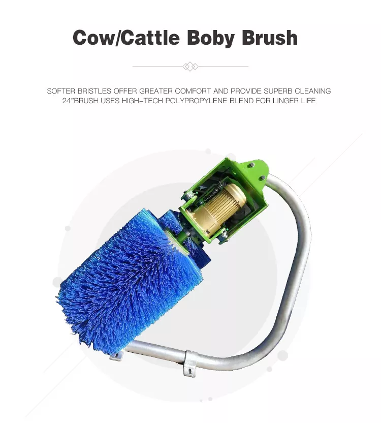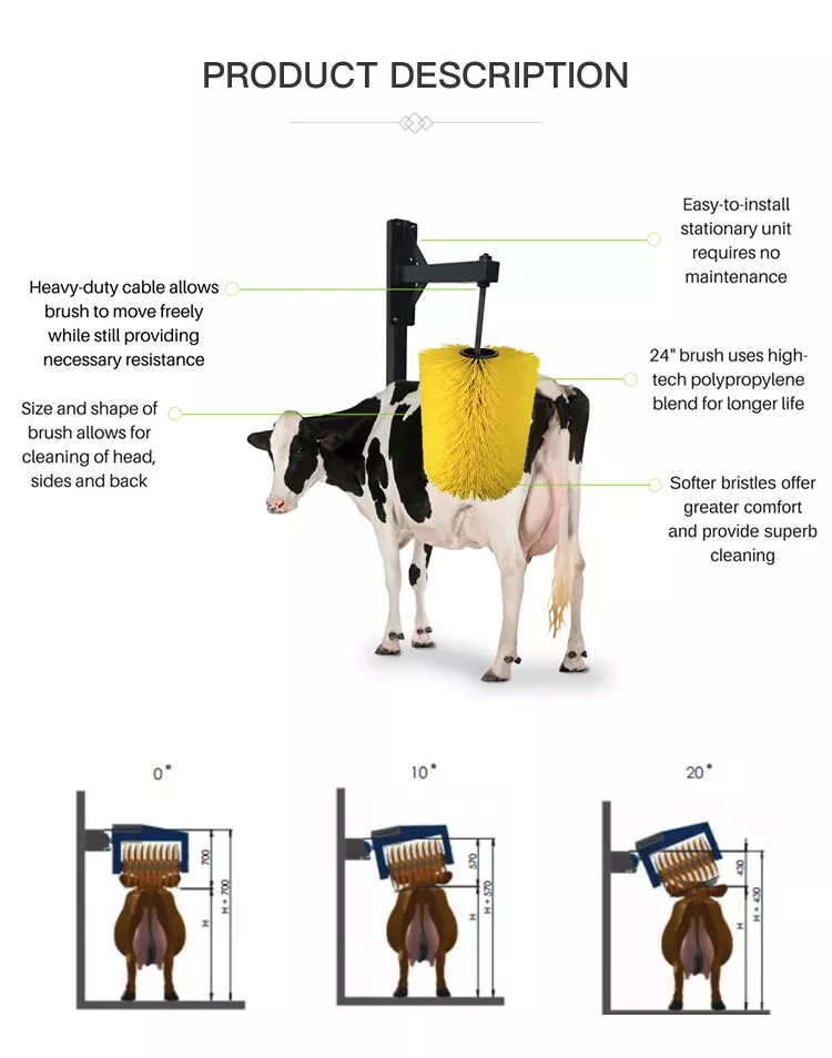 2. 0°/10°/20°-ko angelu erregulagarriak hainbat tamainatako abereei egokitzen zaizkie eta burua, alboak eta bizkarra garbitzea ahalbidetzen dute.