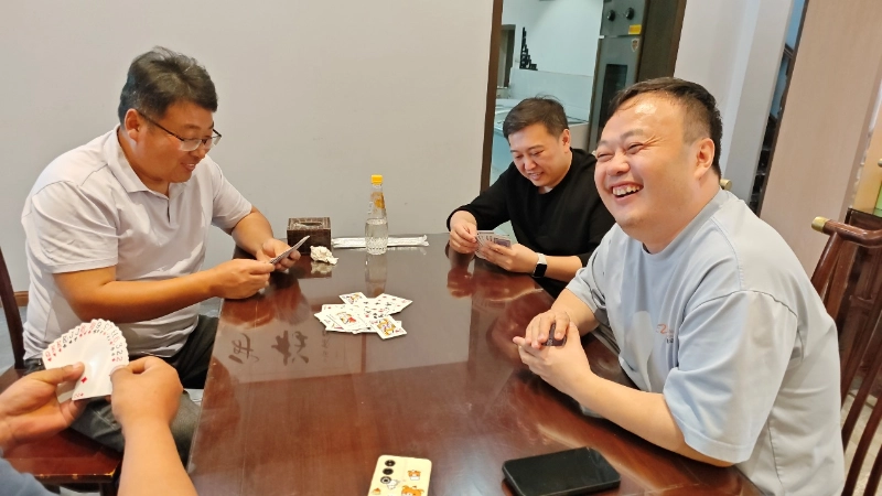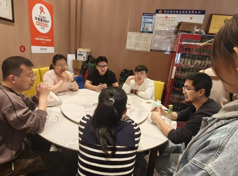 Eguerdian atseden txiki bat egin ondoren, 12:30ean, hotelera joan ginen eta Guandan lehiaketa interesgarri bati ekin genion. Guztiek maite duten talde-eraikuntza-proiektu gisa, Guandanek pentsamendu logiko pertsonala probatu ez ezik, bazkideen arteko isilbidezko lankidetzari ere arreta handiagoa ematen dio - "Txartel on batek ez du momentuz lehiatzen, eta bikotekidearen ulermen tazitua heroismo pertsonala baino garrantzitsuagoa da".